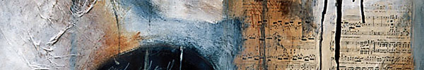 Over the years I keep adding to this collection of paintings featuring mixed media objects such as leather, horsehair, musical scores or even parts of instruments. The canvases symbolize the classical music that filters through our lives, leaving us all with unforgettable memories of incomparible sounds. Music, like art, remains a powerful adhesive that brings the human race together in a world where other forms of communication are often missing.…
